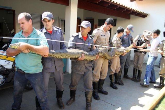 Анаконда, или гигантская анаконда, или обыкновенная анаконда, или зеленая анаконда (лат. Eunectes murinus), — вид змей из подсемейства удавов (Boidae). В литературе можно встретить название "водяной удав". Анаконда - крупнейшая по массе из современных змей. Ее масса достигает 97,5 кг при длине 5,2 метра. Есть множество сообщений о более крупных особях, 9 или 11 метров в длину, однако они мало достоверны. Теоретически, анаконда может достигать чуть больших размеров, до 6.7 м.