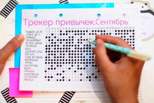 Трекер привычек – список, расписание, календарь (как пожелаете), в которых вы фиксируете цель, а потом отмечаете, с какой регулярностью над ней работали, объясняет психолог Валерия АЛЕКСАНДРОВСКАЯ.