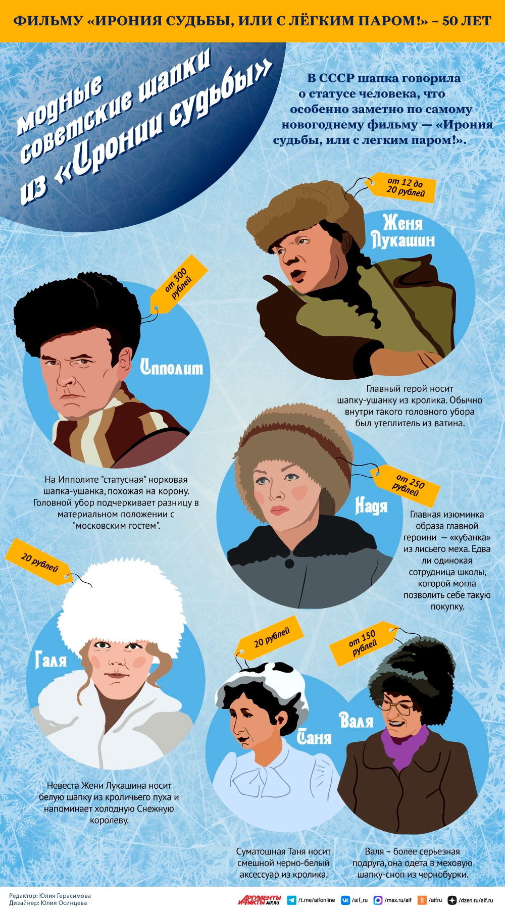 Одна из примет того времени - меховые зимние шапки, многие из которых сегодня снова в тренде. Смотрите в инфографике «АиФ», какие головные уборы носили герои картины и как они характеризовали своих хозяев.