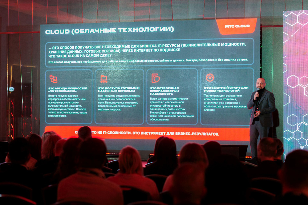 Значительная часть мероприятия была посвящена облачным решениям. Руководитель МТС Cloud Евгений Кондратеня подчеркнул, что «облако» сегодня — это не просто способ получить вычислительные мощности или хранилище данных, а право бизнеса управлять инфраструктурой гибко и безопасно. Он отметил: «Мы фактически нивелируем риски бизнеса. Облачные сервисы позволяют компаниям использовать ровно столько ресурсов, сколько необходимо в данный момент, и масштабировать их в несколько кликов».