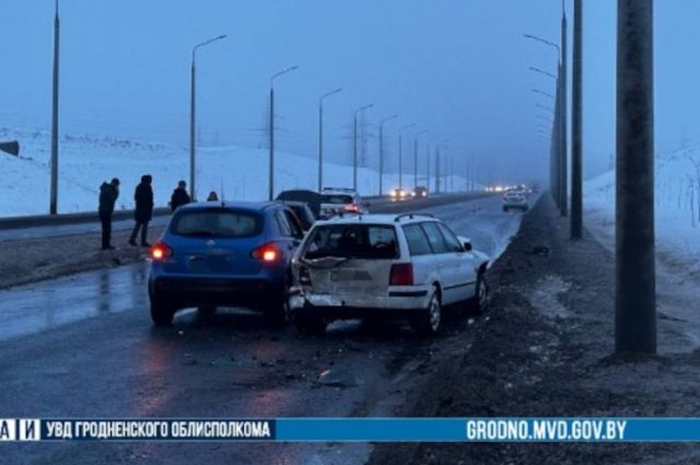 В Гродно вечером 12 февраля столкнулись четыре легковушки.