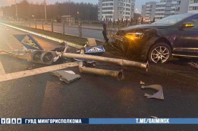 За рулем была 48-летняя водитель Volkswagen Jetta. Машина двигалась по улице Франциска Скорины вблизи пересечения с улицей Жасминовой и выехал за пределы проезжей части, после чего врезалась в светофор и металлическое ограждение. По предварительной информации, женщина уснула за рулем.