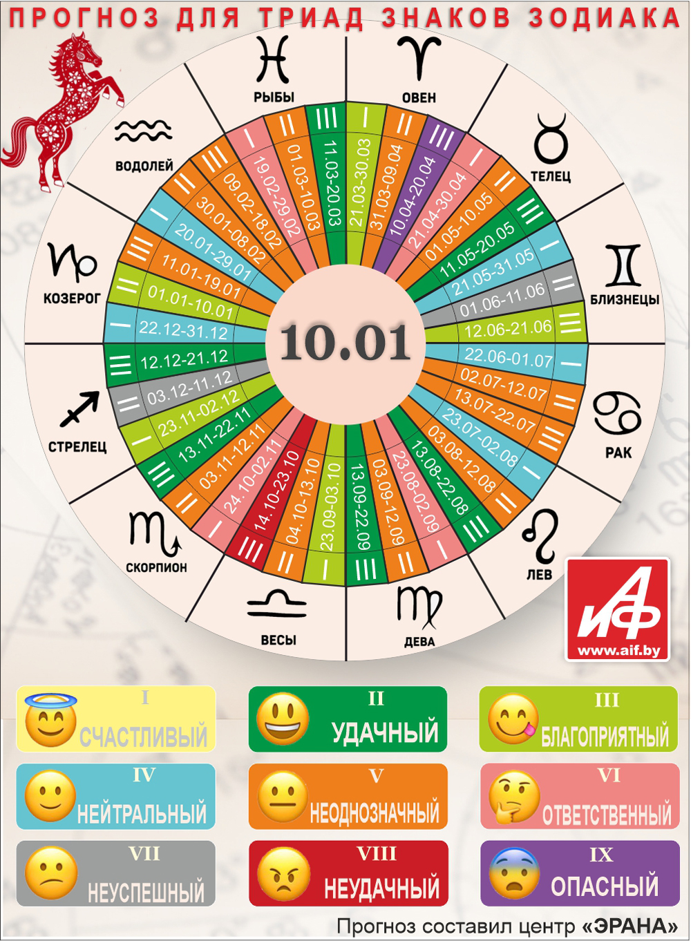 Специалисты центра «ЭРАНА» для точности прогноза представителей каждого знака зодиака делят на три типа по дате рождения, так называемые триады. Каждый из них имеет свои отличительные черты характера и особенности в прогнозах.