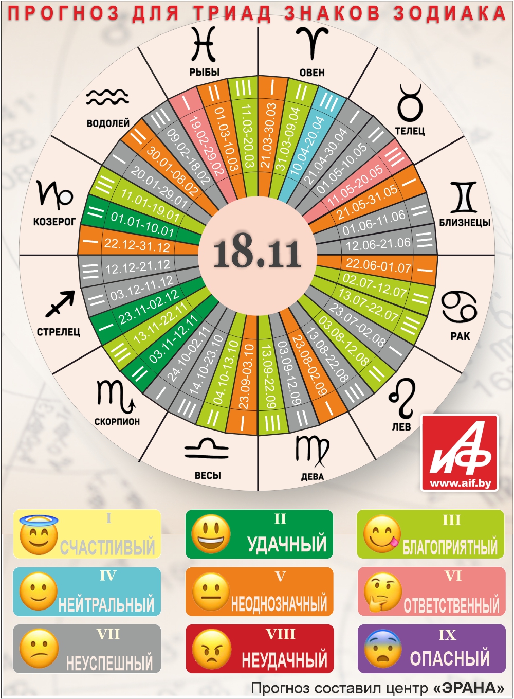 Специалисты центра «ЭРАНА» для точности прогноза представителей каждого знака зодиака делят на три типа по дате рождения, так называемые триады. Каждый из них имеет свои отличительные черты характера и особенности в прогнозах.