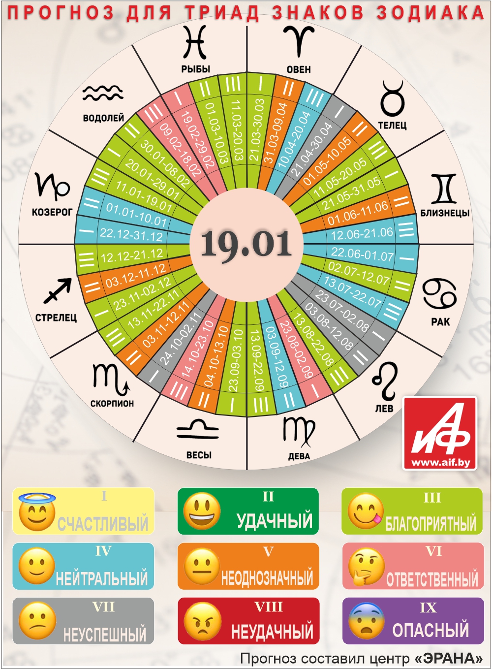 Специалисты центра «ЭРАНА» для точности прогноза представителей каждого знака зодиака делят на три типа по дате рождения, так называемые триады. Каждый из них имеет свои отличительные черты характера и особенности в прогнозах.