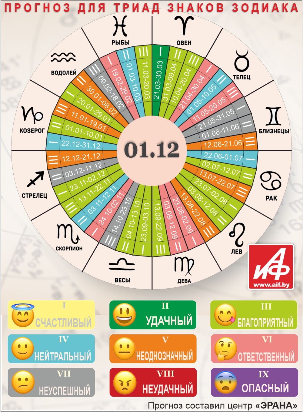 Специалисты центра «ЭРАНА» для точности прогноза представителей каждого знака зодиака делят на три типа по дате рождения, так называемые триады. Каждый из них имеет свои отличительные черты характера и особенности в прогнозах.