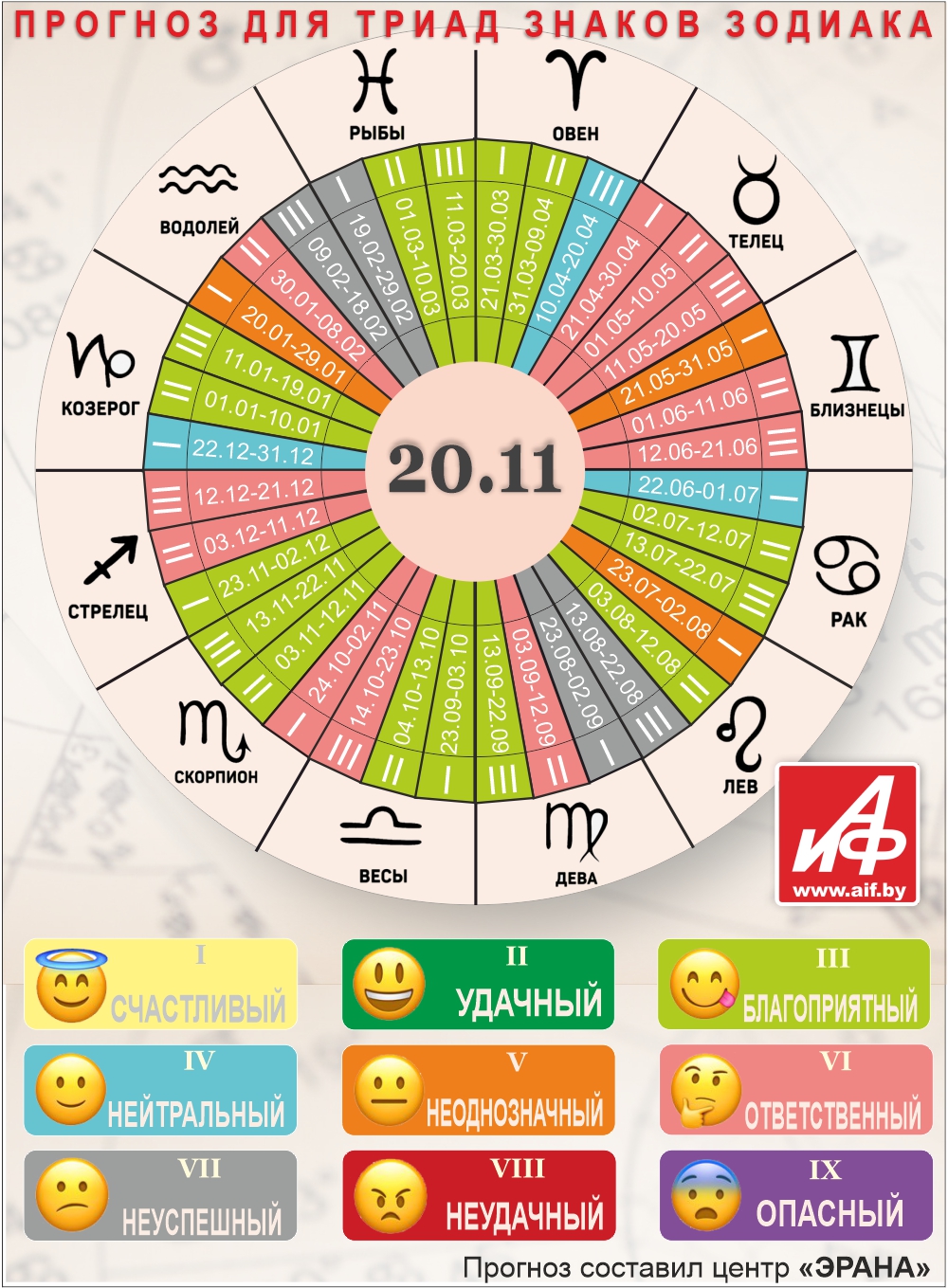 Специалисты центра «ЭРАНА» для точности прогноза представителей каждого знака зодиака делят на три типа по дате рождения, так называемые триады. Каждый из них имеет свои отличительные черты характера и особенности в прогнозах.