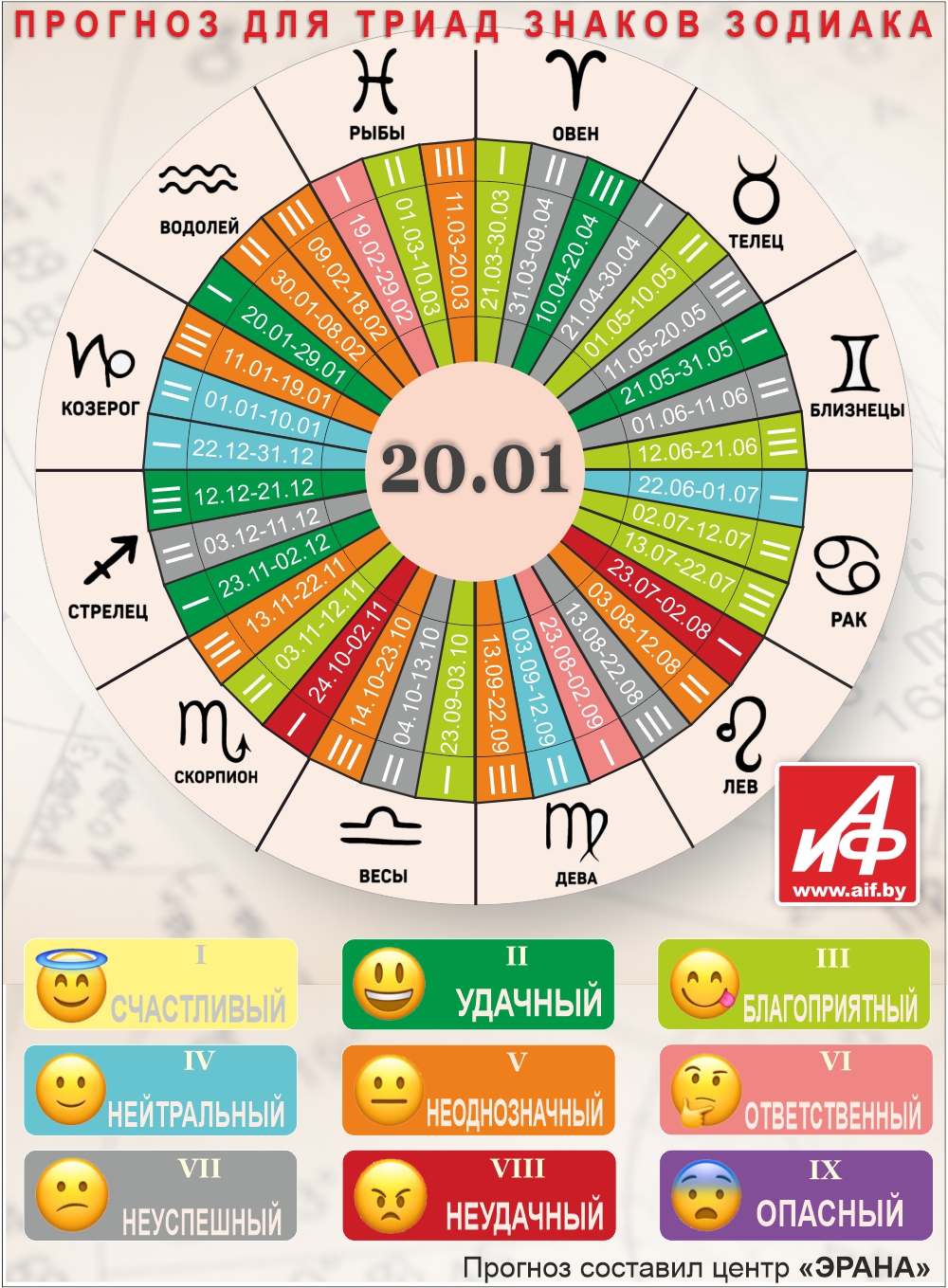 Специалисты центра «ЭРАНА» для точности прогноза представителей каждого знака зодиака делят на три типа по дате рождения, так называемые триады. Каждый из них имеет свои отличительные черты характера и особенности в прогнозах.