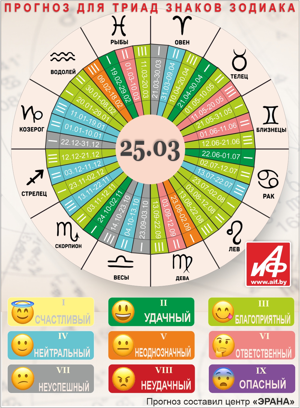 Специалисты центра «ЭРАНА» для точности прогноза представителей каждого знака зодиака делят на три типа по дате рождения, так называемые триады. Каждый из них имеет свои отличительные черты характера и особенности в прогнозах.
