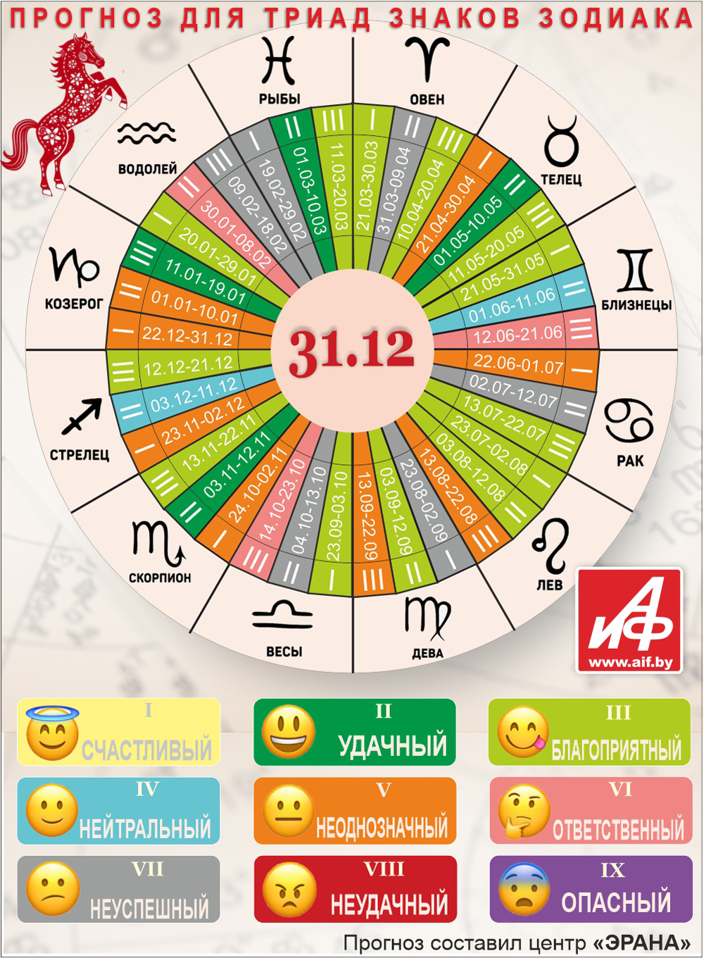 Специалисты центра «ЭРАНА» для точности прогноза представителей каждого знака зодиака делят на три типа по дате рождения, так называемые триады. Каждый из них имеет свои отличительные черты характера и особенности в прогнозах.