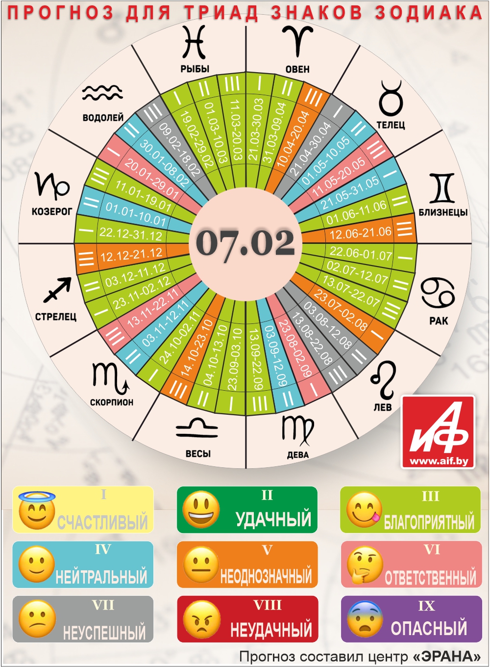 Специалисты центра «ЭРАНА» для точности прогноза представителей каждого знака зодиака делят на три типа по дате рождения, так называемые триады. Каждый из них имеет свои отличительные черты характера и особенности в прогнозах.