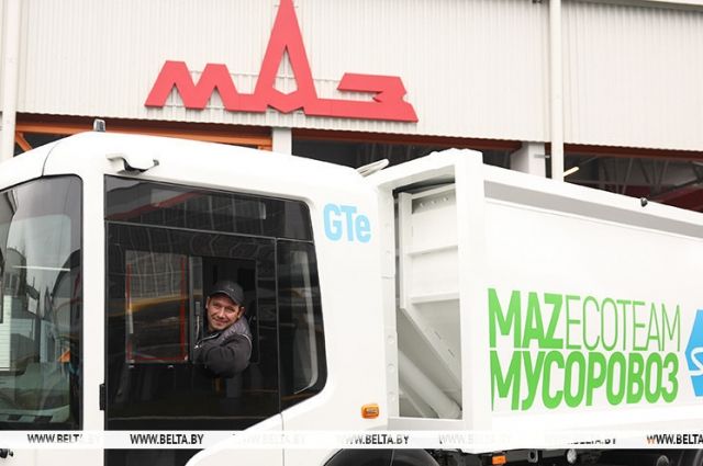 МАЗ передал первый белорусский электрический мусоровоз коммунальным службам.