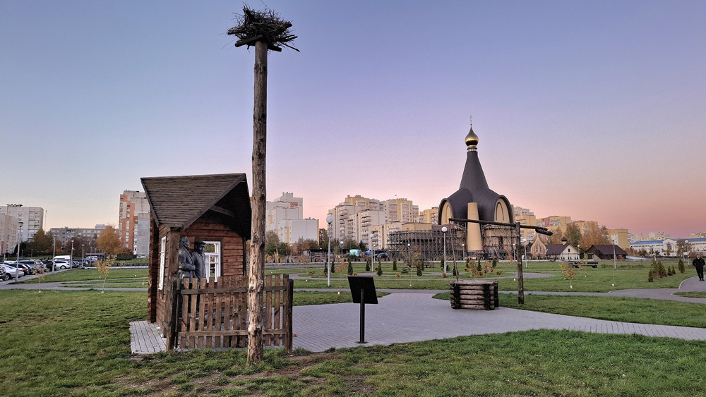 А рядом, конечно же, столб с гнездом аиста, в котором играл на гармони герой Караченцова – Васька.