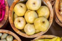 Яблоки для замачивания снимают, выдерживают в помещении 15-20 дней. Лучшим сортом для мочения считается Антоновка, вполне пригодны также Пепин литовский, Бабушкино, Анис, Осеннее полосатое. Летние сорта яблок для мочения непригодны.