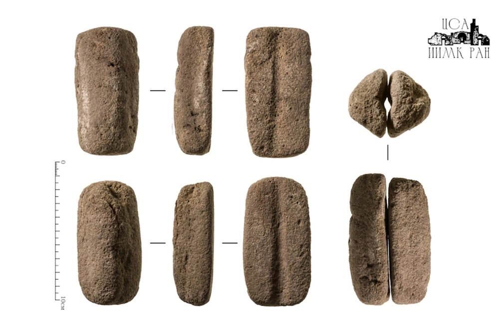 Один из них учёные извлекли из-под земли, разбирая перекрытия могил. Всего внутри кургана насчитывалось девять погребений, и шесть из них были нетронутыми. Правда, инвентарь в них был немногочисленным, но кое-какие находки археологов порадовали. Например, выпрямитель древков стрел — предмет, который практически не встречается в окуневских погребениях.
