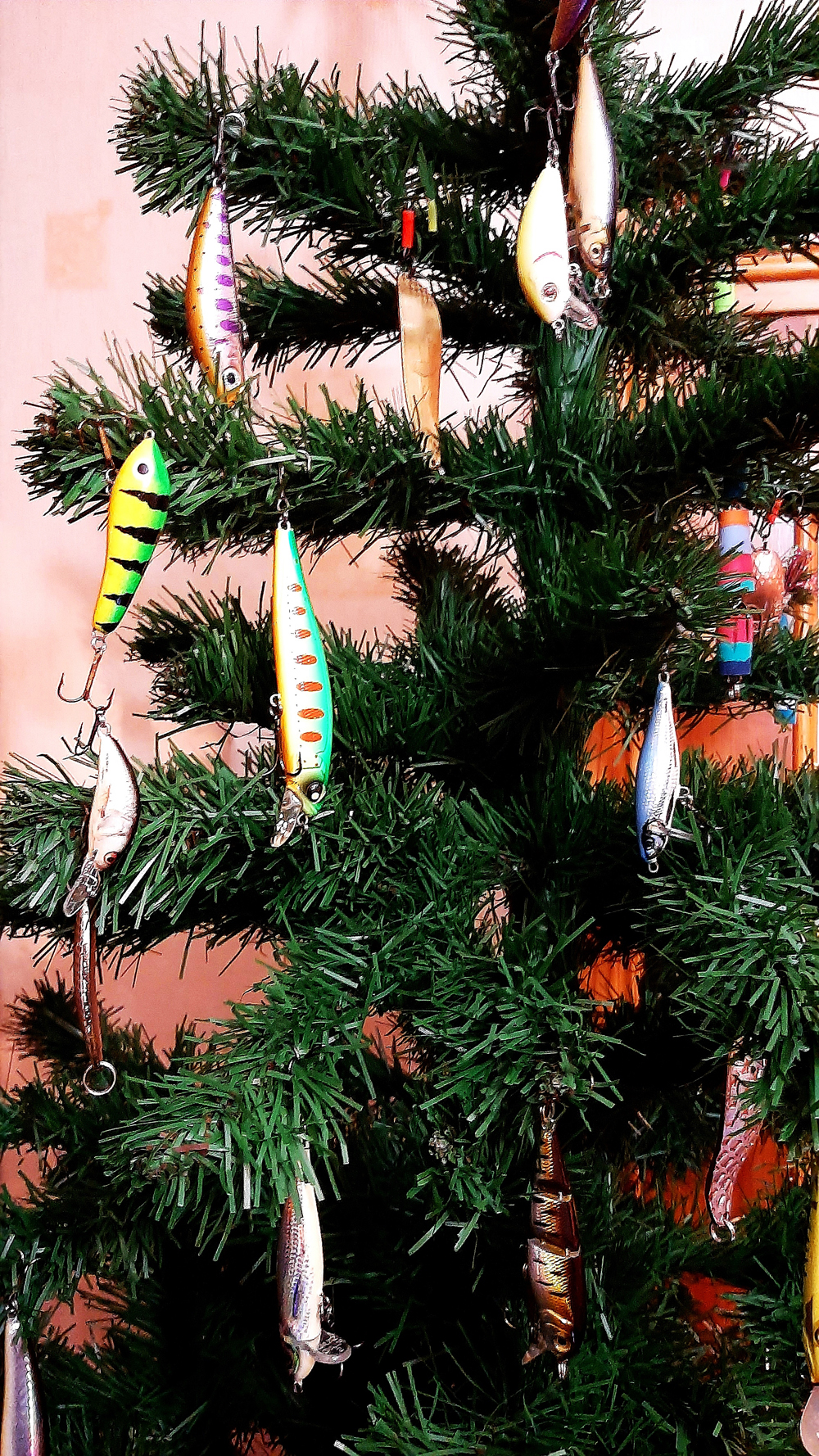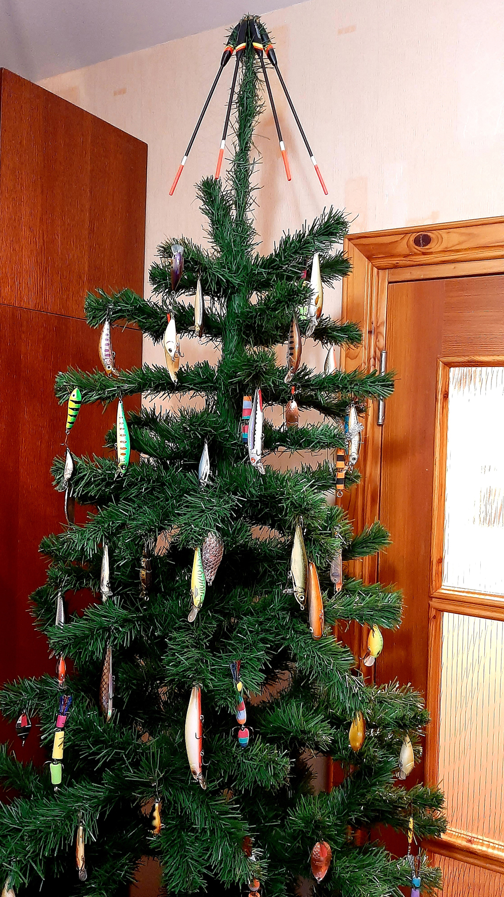 Влюбленные в рыбалку люди любят наряжать елки в своих жилищах и служебных кабинетах не только шариками, но и рыболовными приманками – блеснами, воблерами, поплавками из собственных походных коробок. Смотрятся они на зеленых ветвях не менее эстетично, радуя глаз и грея душу.