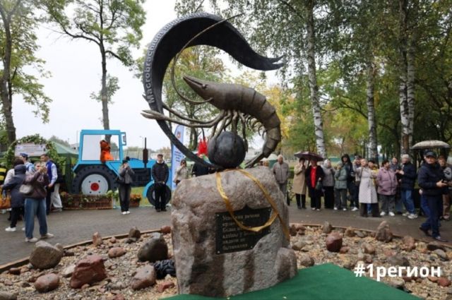 В городе Белоозерске, который 4 октября принимает фестиваль-ярмарку тружеников села Брестской области "Дажынкі-2025", открыли памятный знак белорусской пресноводной креветке.