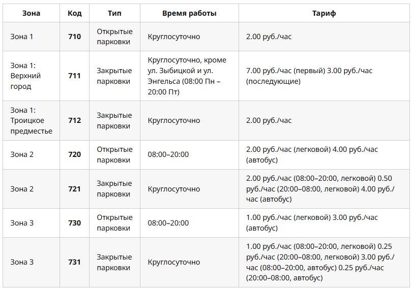 Первая (красная) зона находится в центре города и считается наиболее востребованной среди автовладельцев. Это территория Верхнего города, Троицкого предместья, улицы Замковой. Вторая зона (желтая) проходит в границах первого транспортного кольца, третья (зеленая) – в границах второго транспортного кольца.