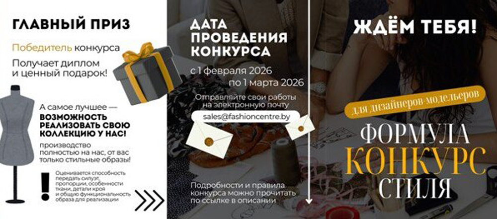 С 1 февраля по 1 марта 2026 года в Беларуси пройдет конкурс для начинающих дизайнеров «Формула стиля». Инициатива адресована молодым авторам, которые делают первые профессиональные шаги в модной индустрии и готовы заявить о себе через продуманную, концептуальную работу с формой и стилем.