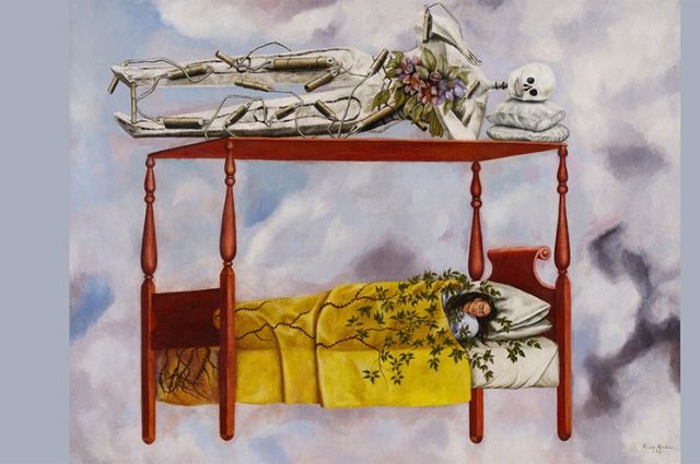 Картина изображает саму Кало, спящую в кровати под балдахином, где висит улыбающийся скелет, обмотанный динамитом. Торги на аукционе Sotheby's заняли всего четыре минуты. По предварительным оценкам, автопортрет Кало оценивался в $40–60 млн.